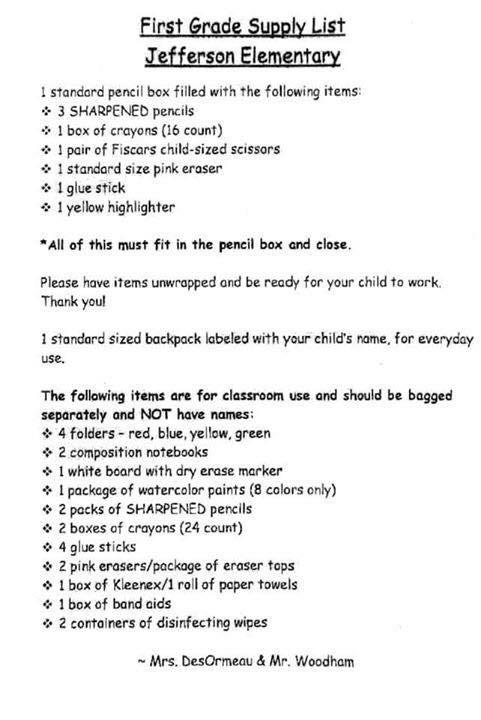 Suggested Supply Lists